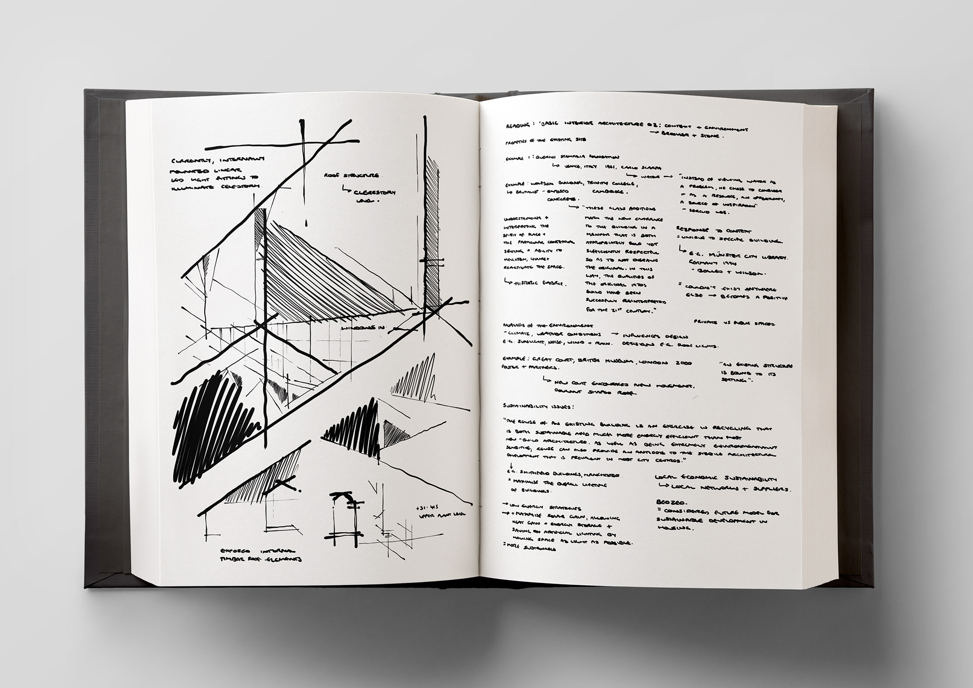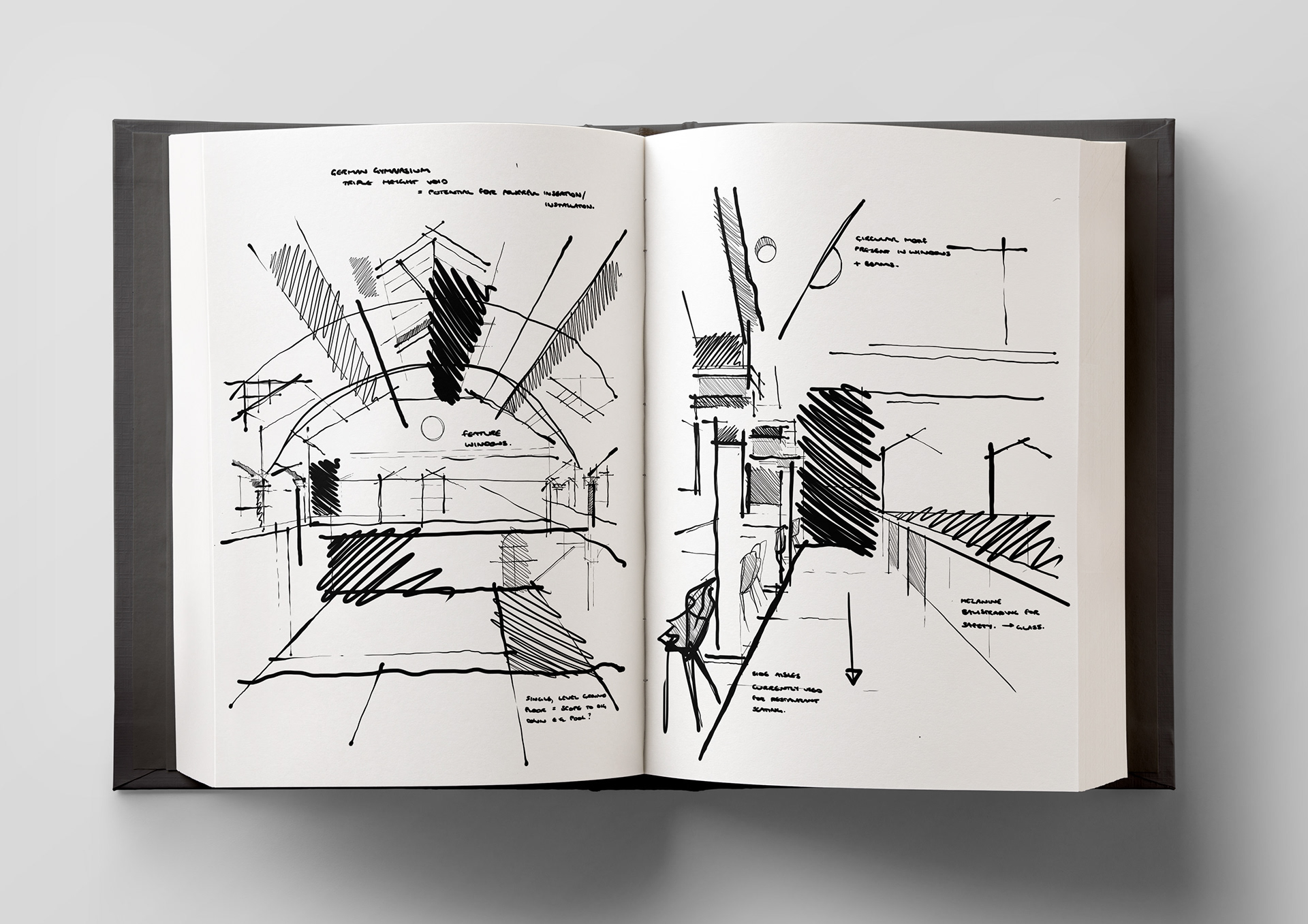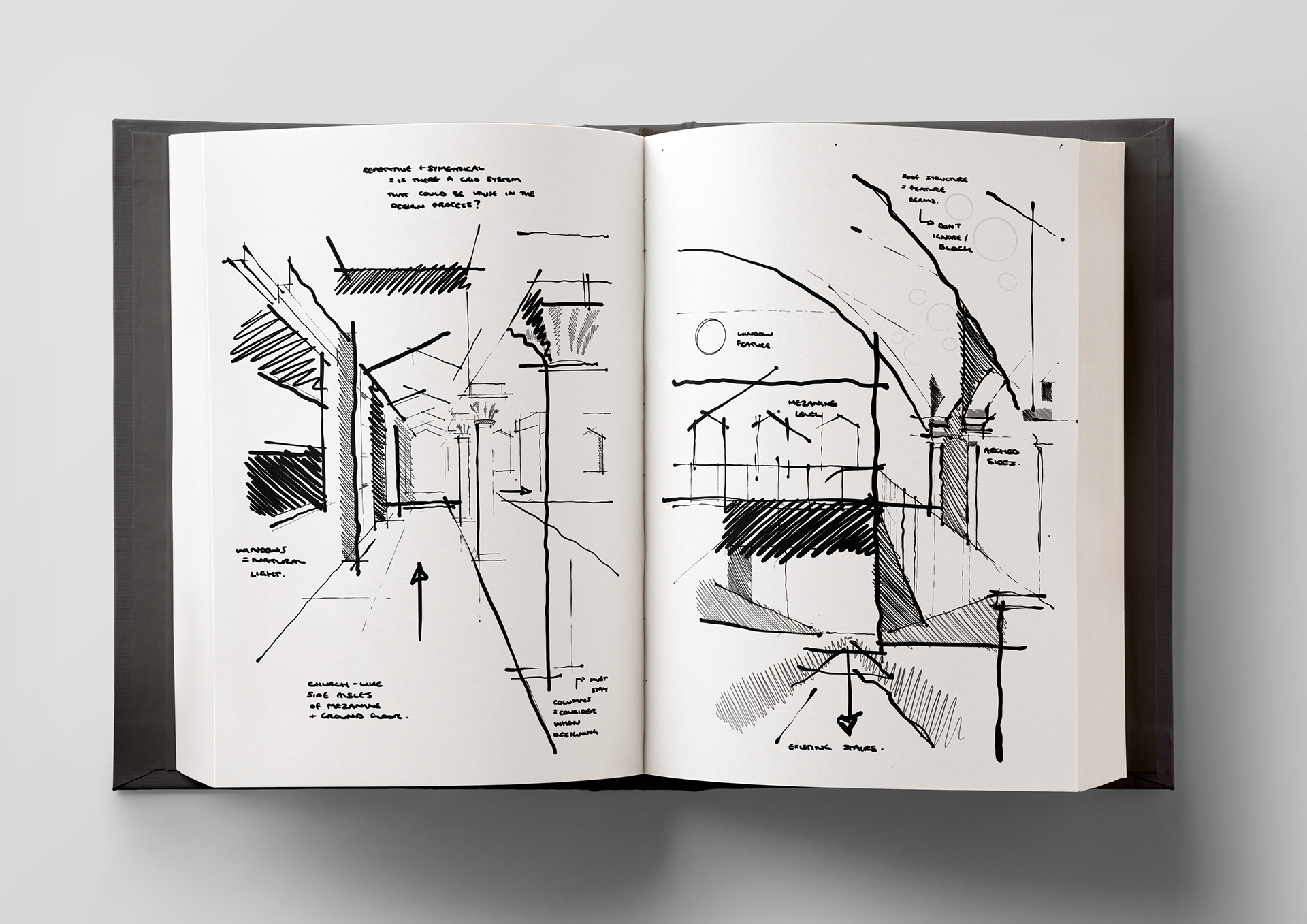 A selection of sketchbook pages from my Interior Design BA (Hons)