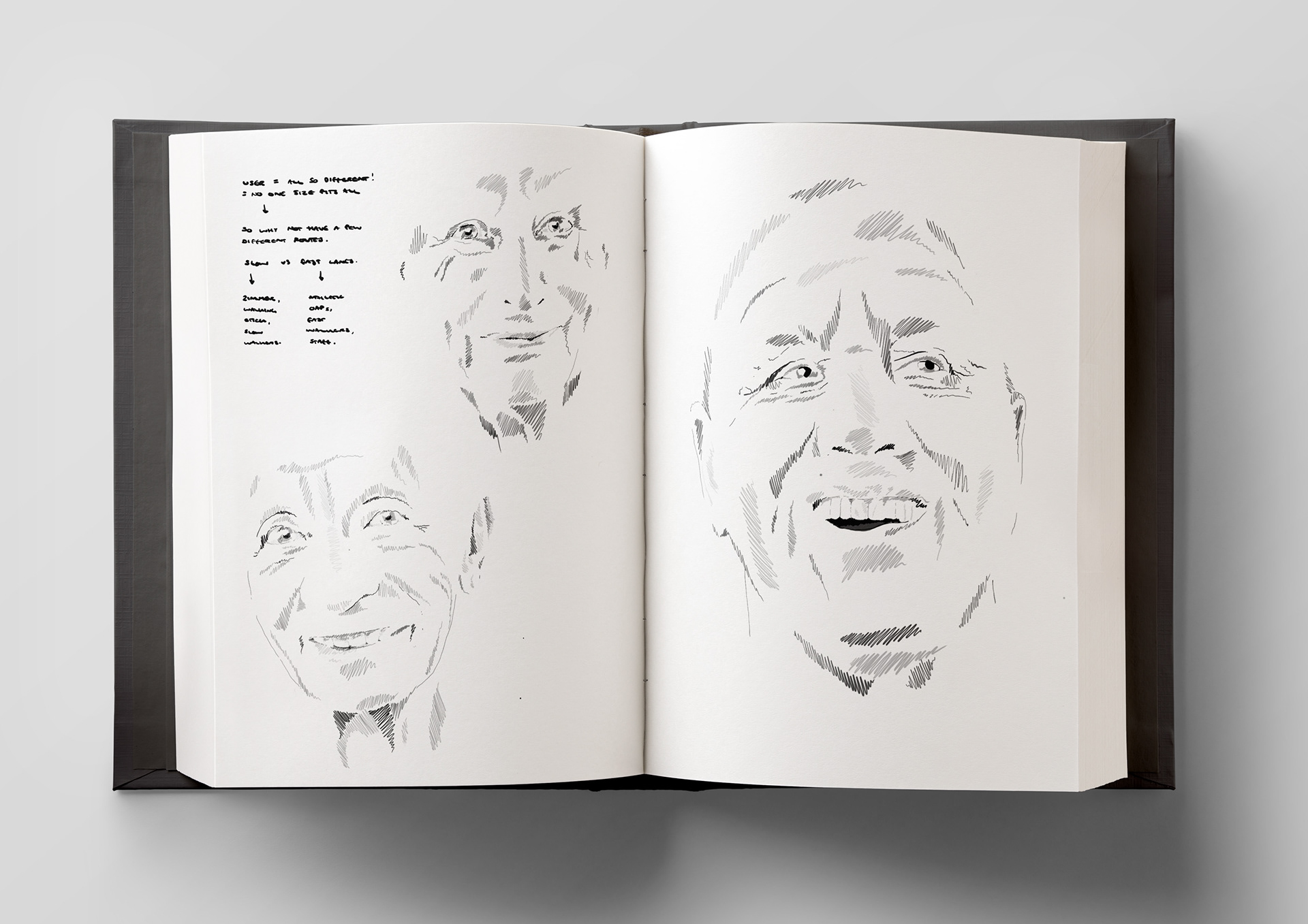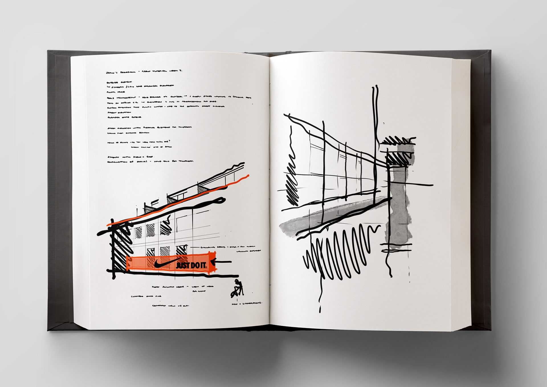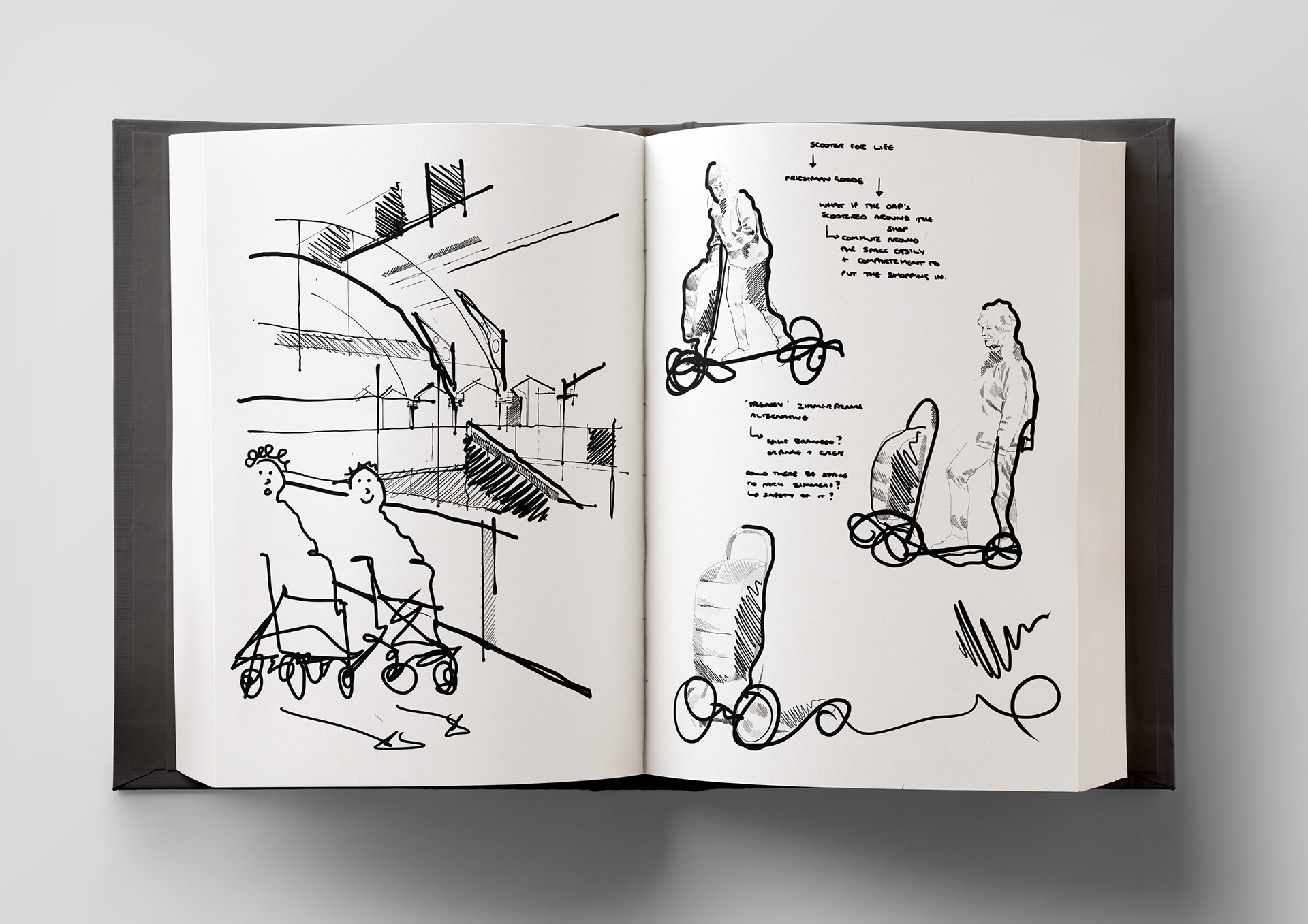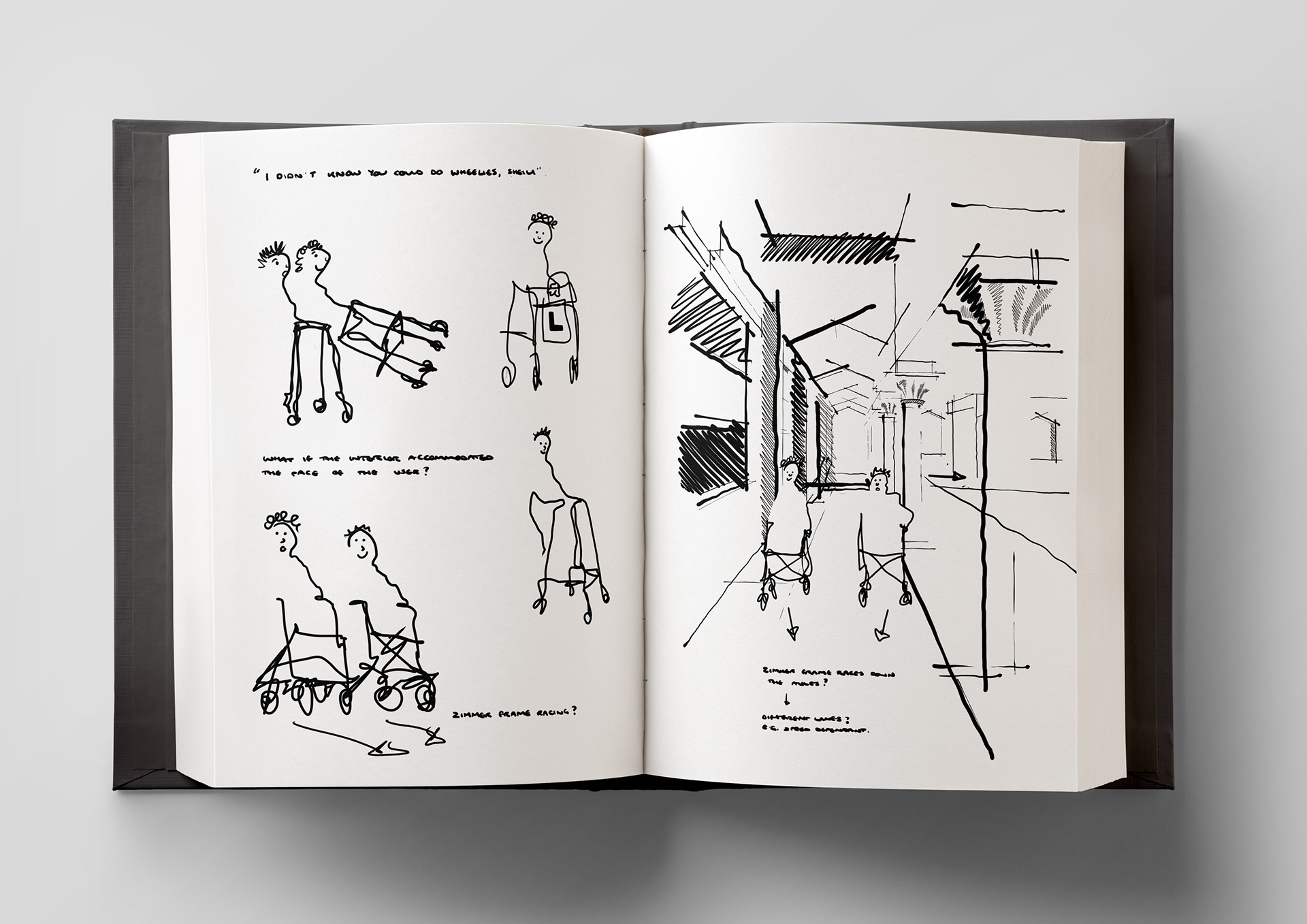 A selection of sketchbook pages from my Interior Design BA (Hons)